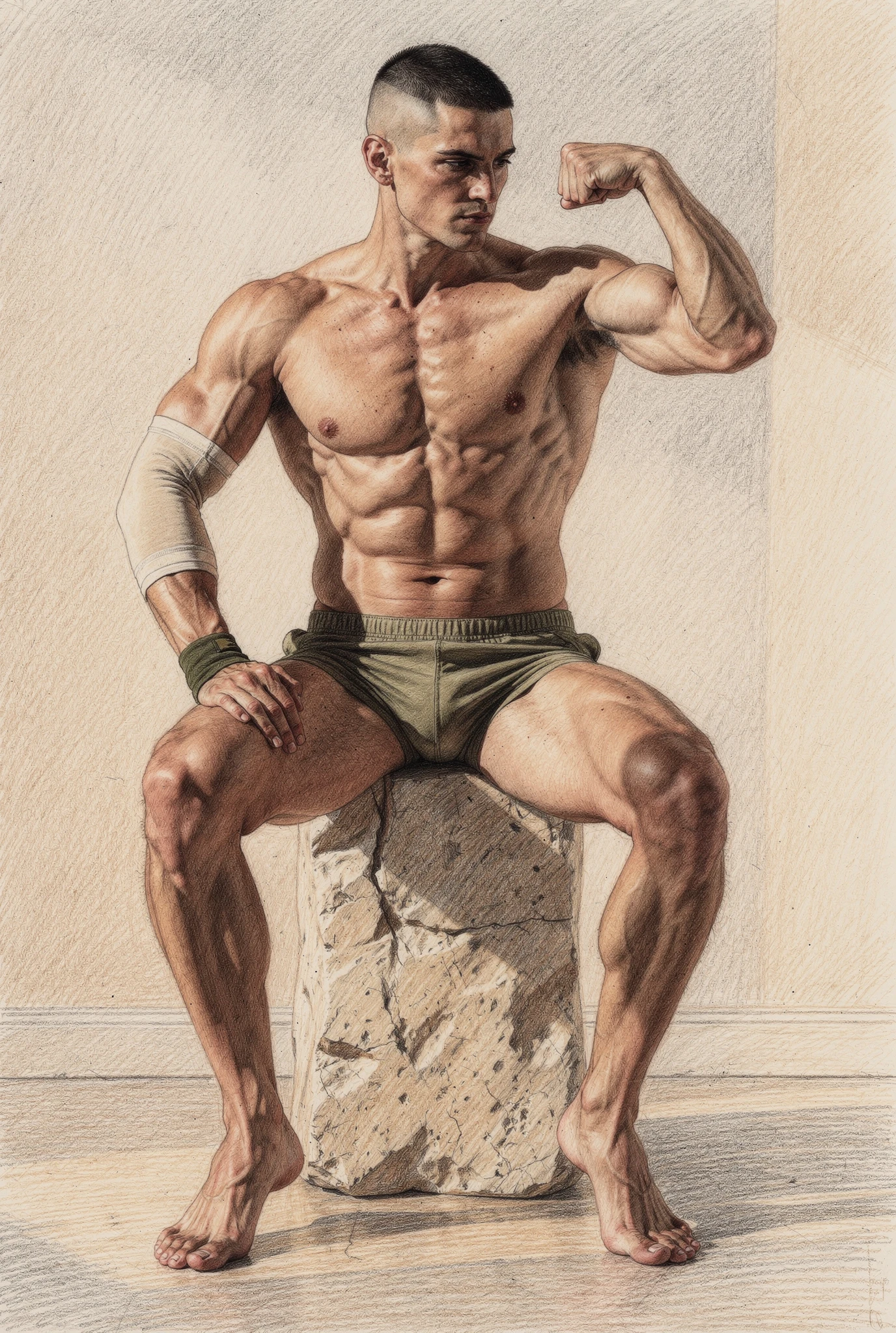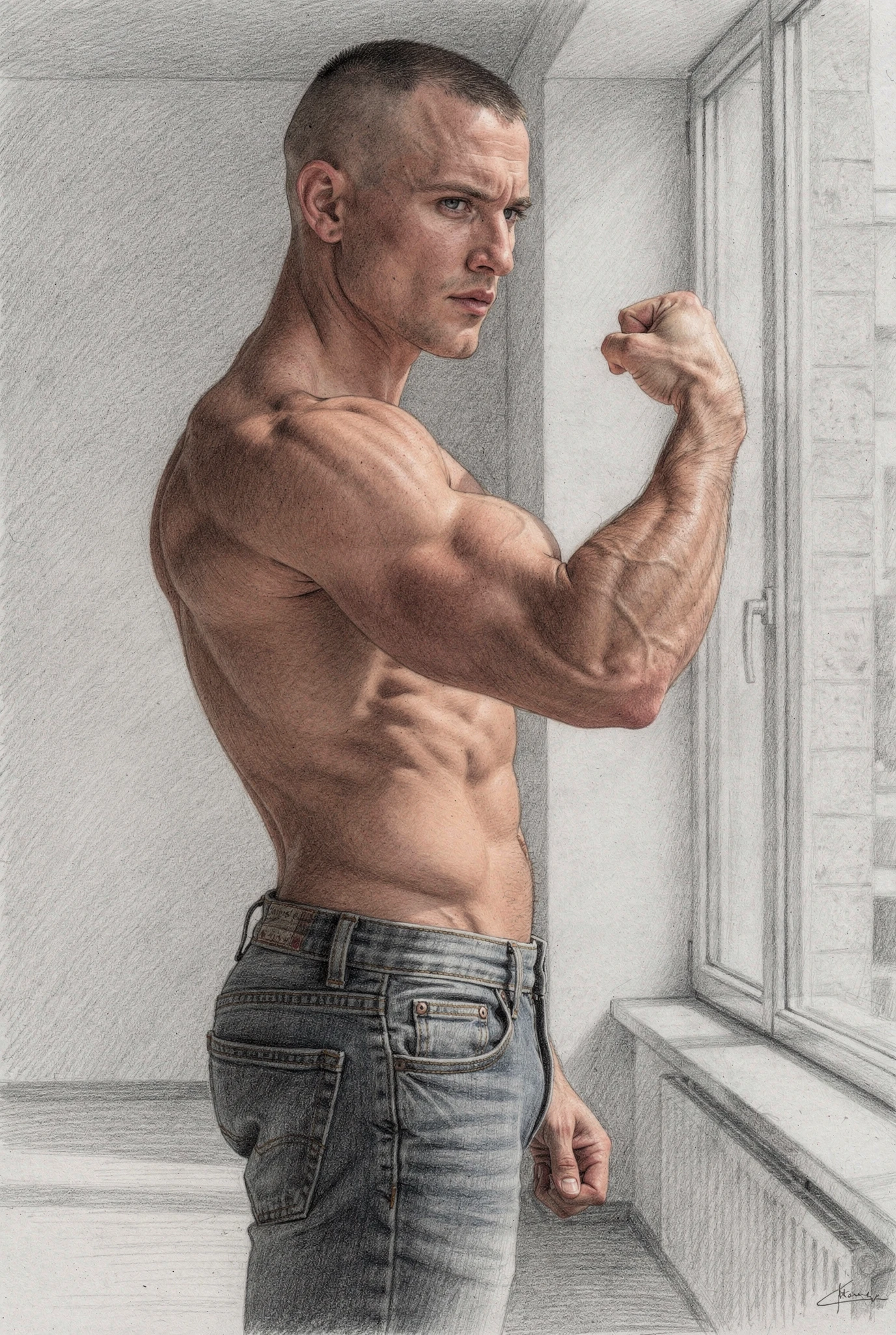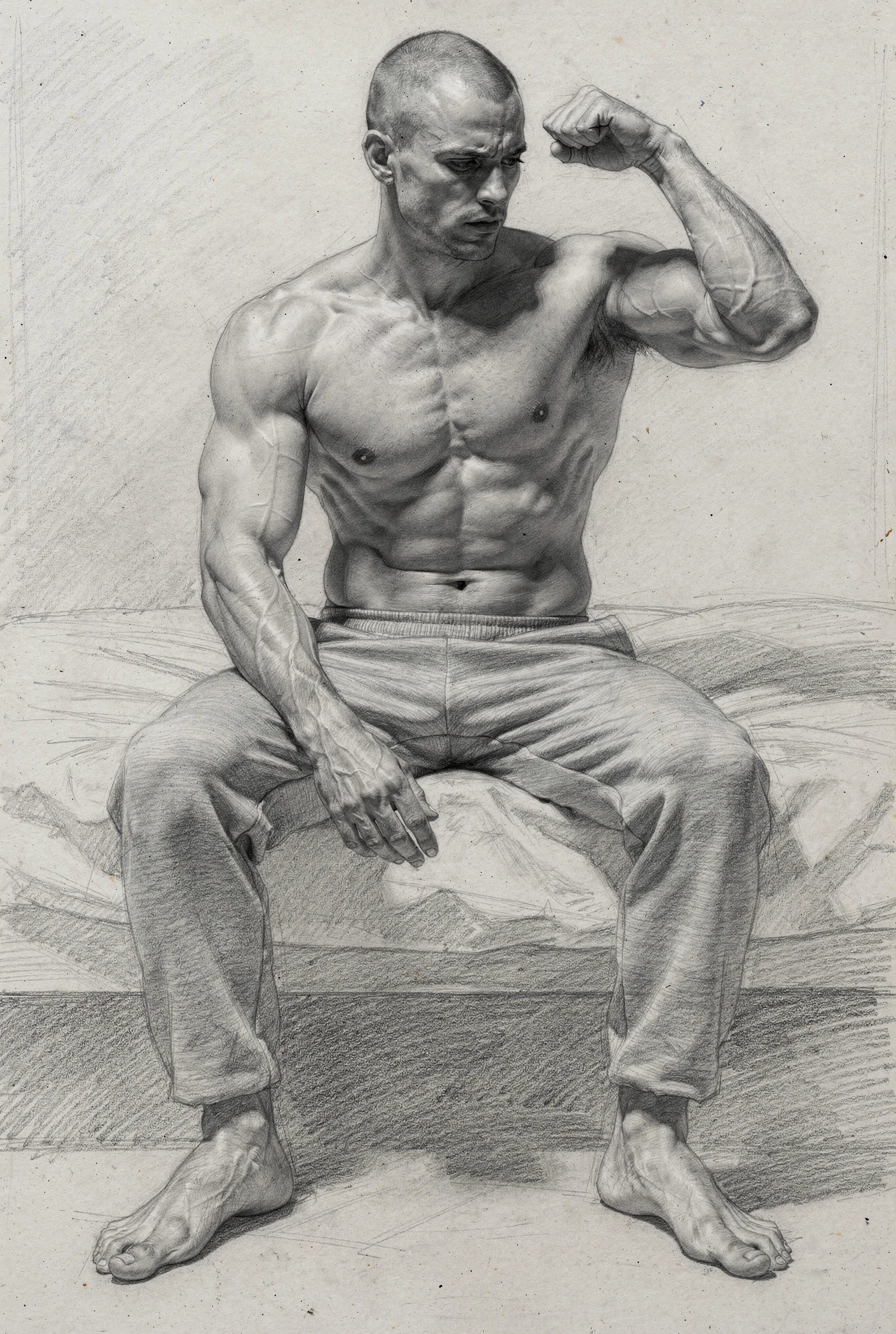 Yet the symbol is not stable. The bicep suggests strength, but also vanity; health, but also anxiety; confidence, but also the need to be seen. It belongs to a world in which masculinity is constantly performed, inspected, and converted into image. In this sense, Bicep is less a study of a muscle than of a modern emblem: a fragment of the body that has come to stand for the whole drama of masculine aspiration. What appears simple at first — one arm, one flex, one sign — reveals itself as dense with longing, ego, discipline, display, and the fragile hope that the body might say everything words cannot. The measure, in the end, is not only physical. It is symbolic, social, and psychological, and for that very reason it remains unstable.