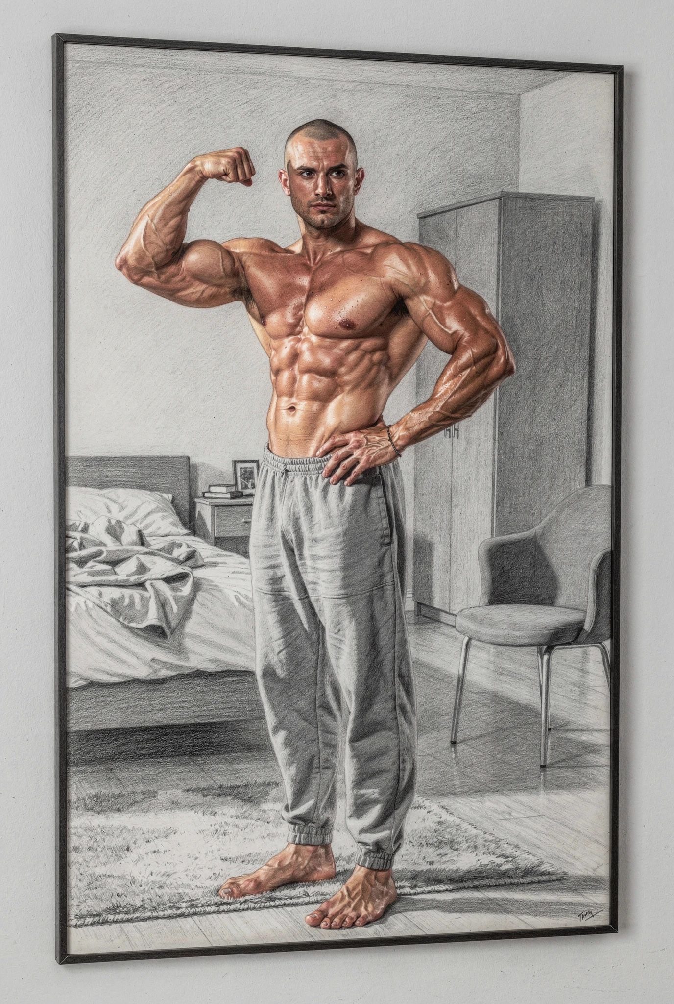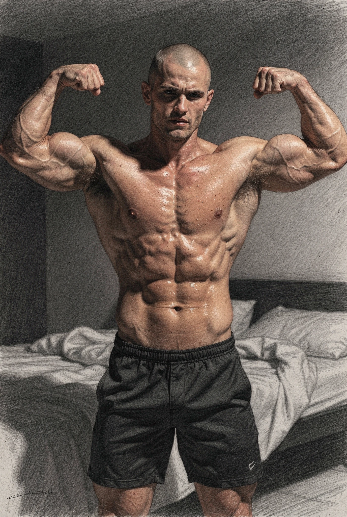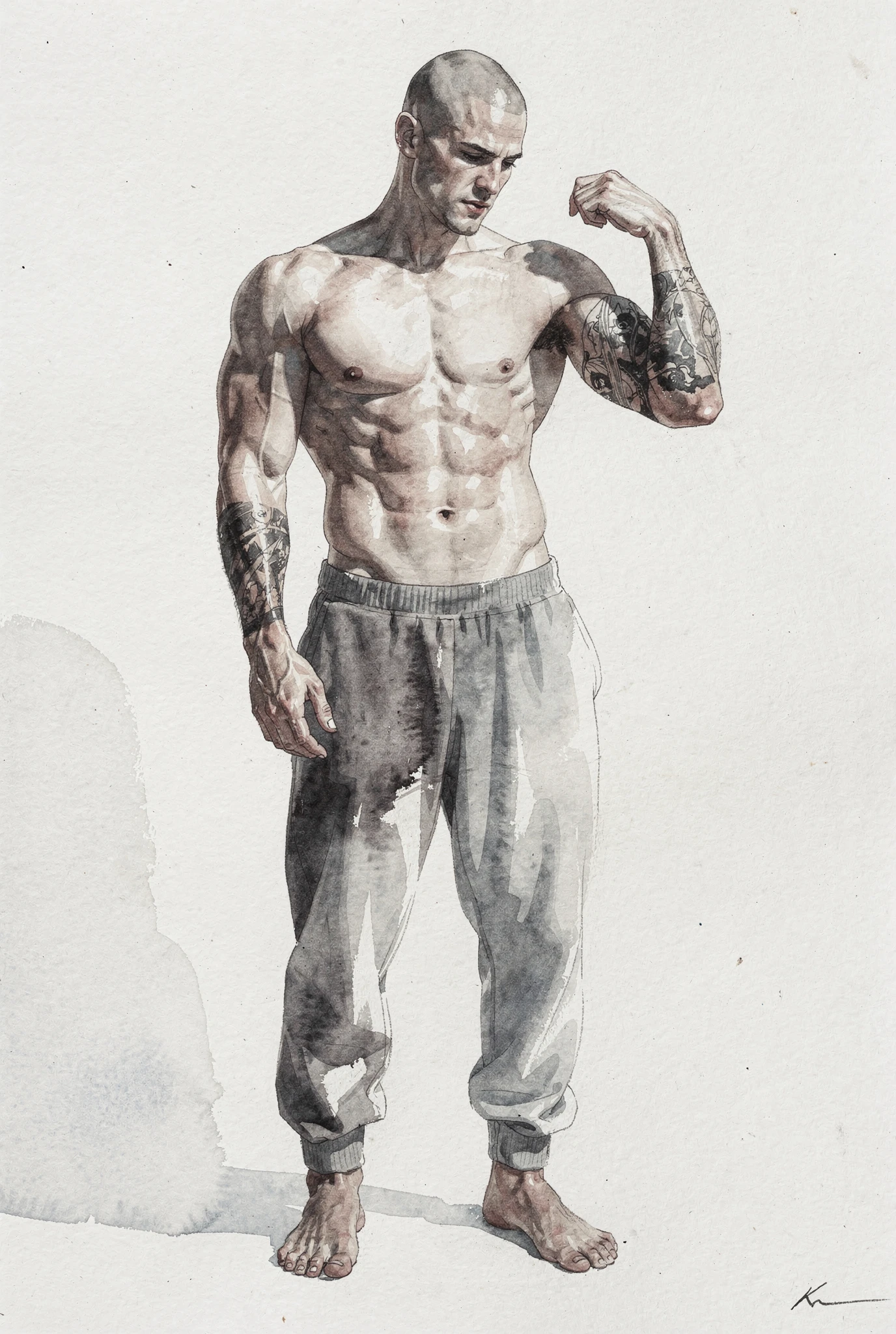 Yet the symbol is not stable. The bicep suggests strength, but also vanity; health, but also anxiety; confidence, but also the need to be seen. It belongs to a world in which masculinity is constantly performed, inspected, and converted into image. In this sense, Bicep is less a study of a muscle than of a modern emblem: a fragment of the body that has come to stand for the whole drama of masculine aspiration. What appears simple at first — one arm, one flex, one sign — reveals itself as dense with longing, ego, discipline, display, and the fragile hope that the body might say everything words cannot. The measure, in the end, is not only physical. It is symbolic, social, and psychological, and for that very reason it remains unstable.