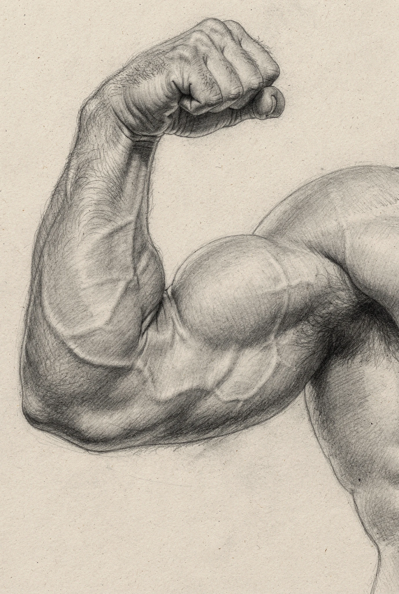 What makes the bicep so potent is that it turns labour into image. It is where training becomes visible, where discipline hardens into form, where effort can be displayed, admired, measured, and compared. Anatomically, the bicep does not work alone: it helps bend the elbow and rotate the forearm, while its size and shape are intensified by the surrounding structures of the upper arm and shoulder. Yet it is this one swelling form that culture isolates and celebrates. To flex the arm is to present the body as evidence: proof of work, proof of will, proof that the self has been shaped into something harder, stronger, and more convincing. The gesture can appear triumphant, even comic, but it is never empty. It asks to be read and, more importantly, believed.