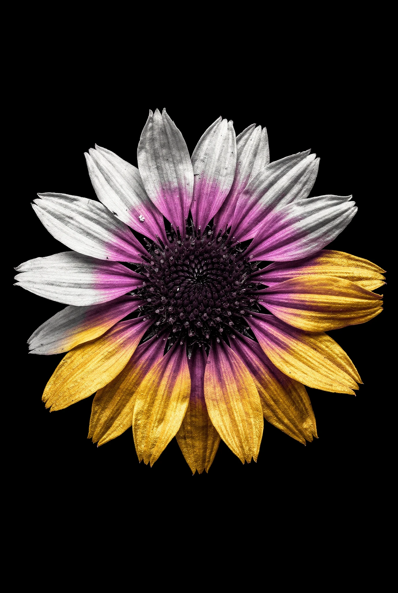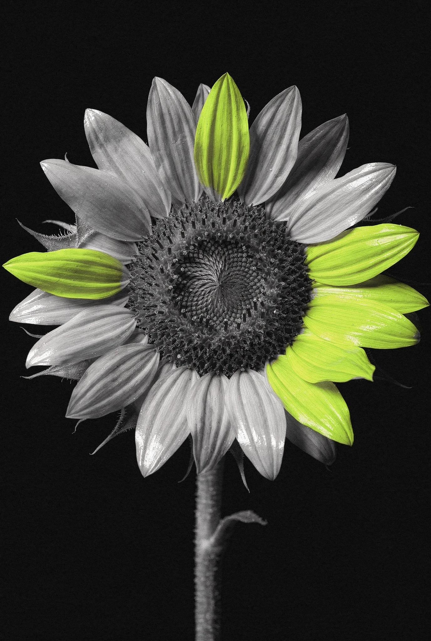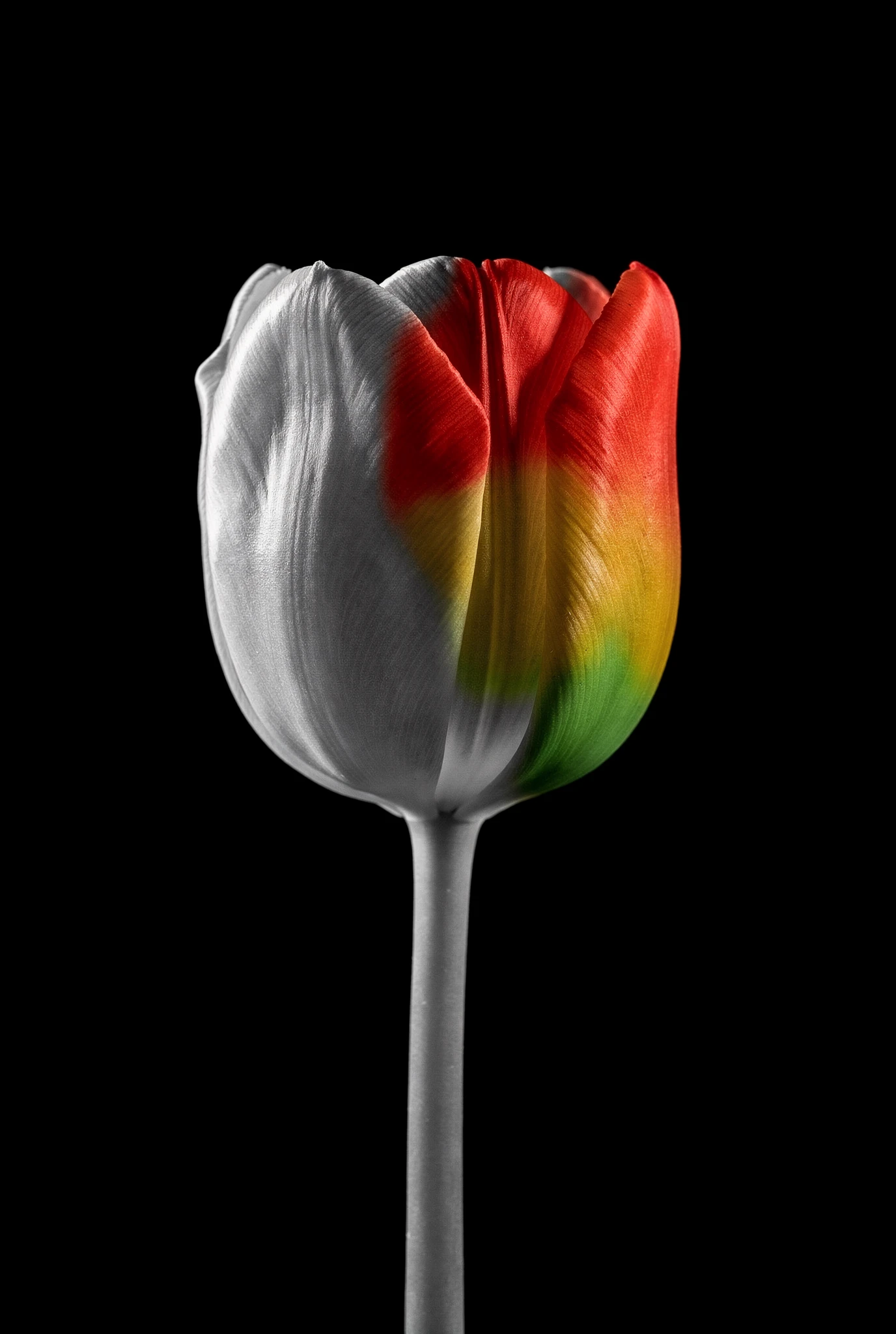 Historically, black-and-white photography never truly lacked colour. Colour was simply recorded differently. Chroma begins in that territory — each flower rendered with clarity. But the monochrome system cannot hold indefinitely. Each flower is isolated against darkness like a specimen plate — calm, centred, almost clinical in its precision. Monochrome photography has always carried a certain austerity, a sense of order and restraint. Yet black-and-white does not truly erase colour; it merely holds it in suspension. In the chemistry of film, in the dyes of printing, and in the strange alchemy of the darkroom, colour has always lingered somewhere beneath the surface. Chroma suggests that beneath the monochrome image lies another possibility.