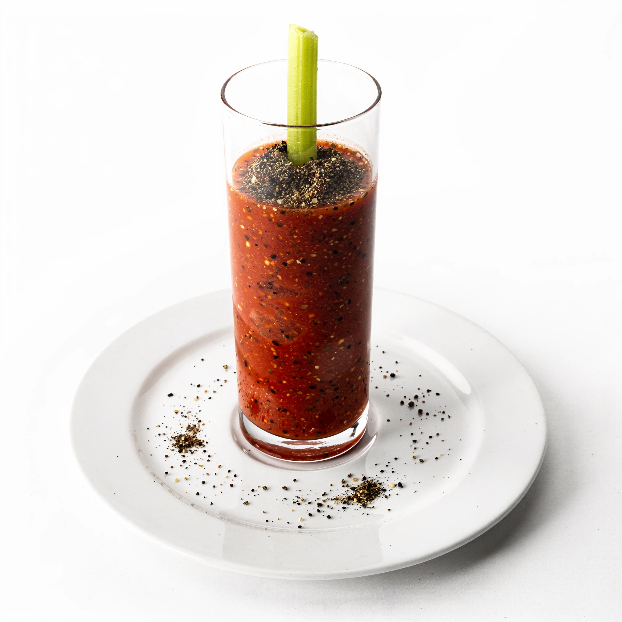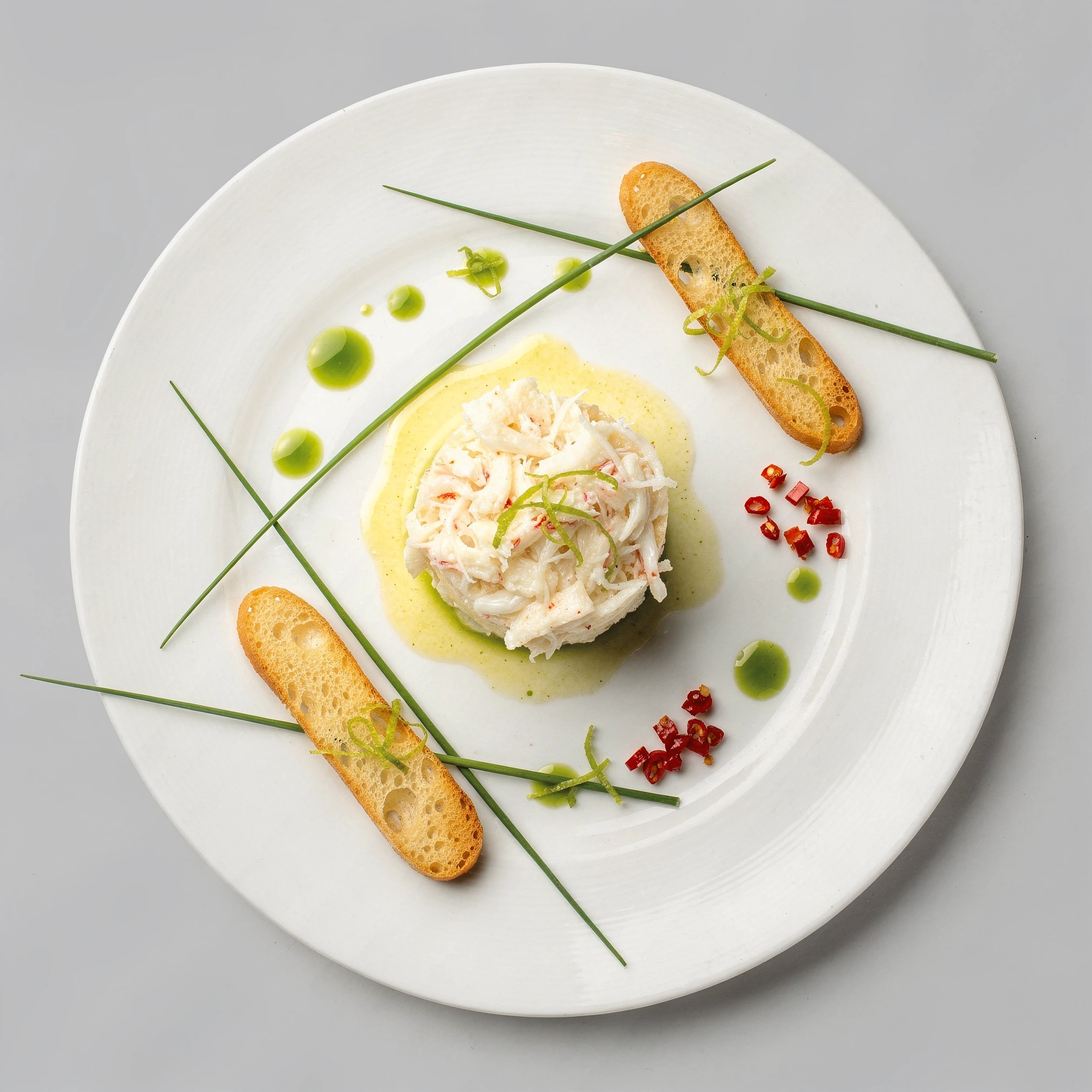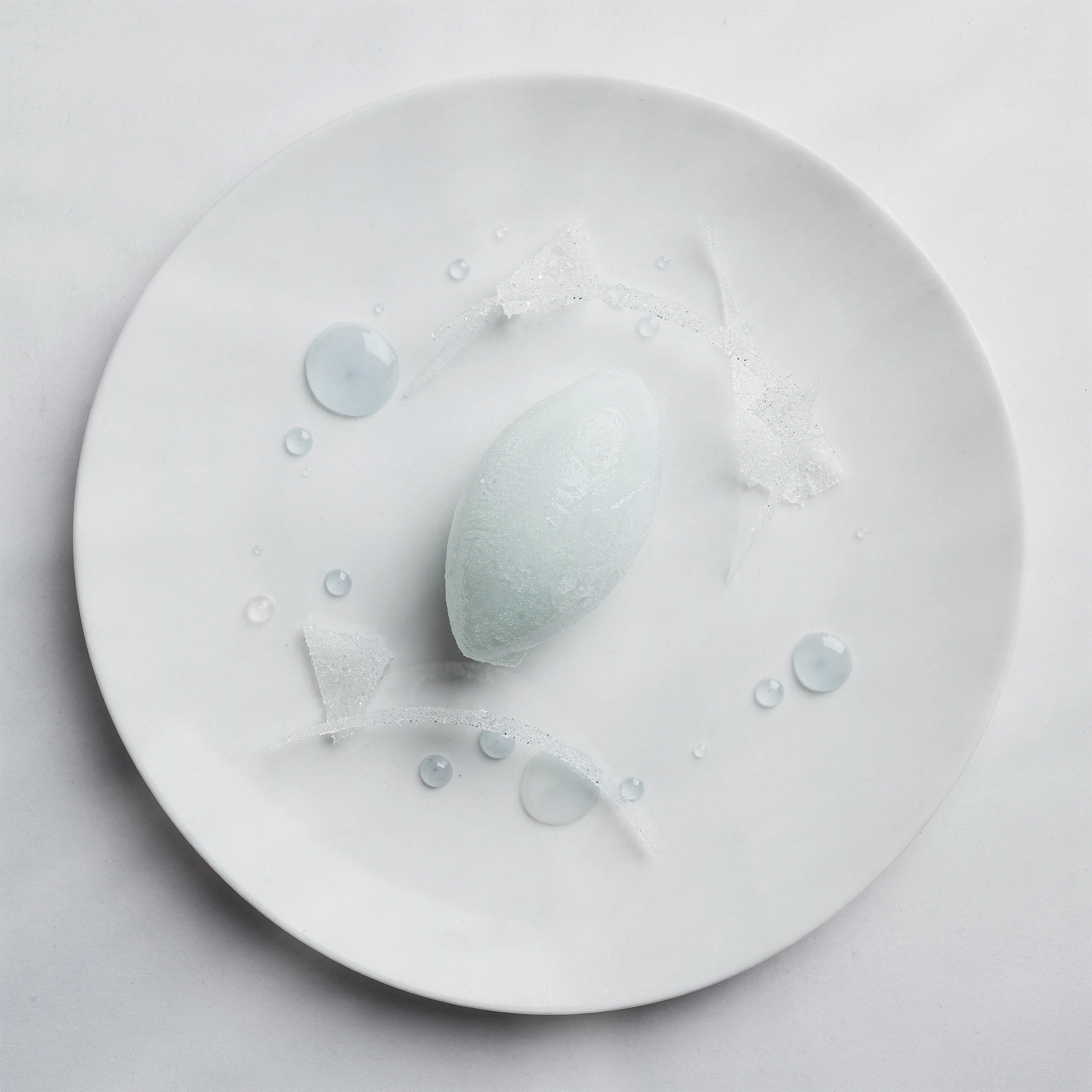 The project is built around a fixed photographic grammar: a bird's-eye view, the complete plate fully visible, isolated within a neutral studio void, with white porcelain acting as a canvas. Removed from kitchens, restaurants, and service, the plate exists solely for inspection. The overhead view removes hospitality and replaces it with scrutiny. Appetite gives way to interpretation. What might initially resemble food photography resolves instead into something closer to contemporary still life, abstraction, and ritual diagram. Drinks appear sparingly within the sequence — small, ceremonial, almost medicinal — reinforcing ingestion as ritual rather than pleasure. We are often told that we eat with our eyes. EAT ME DRINK ME treats food not as nourishment, but as illusion, performance, and psychological threshold: a tasting menu that cannot be eaten, only read.