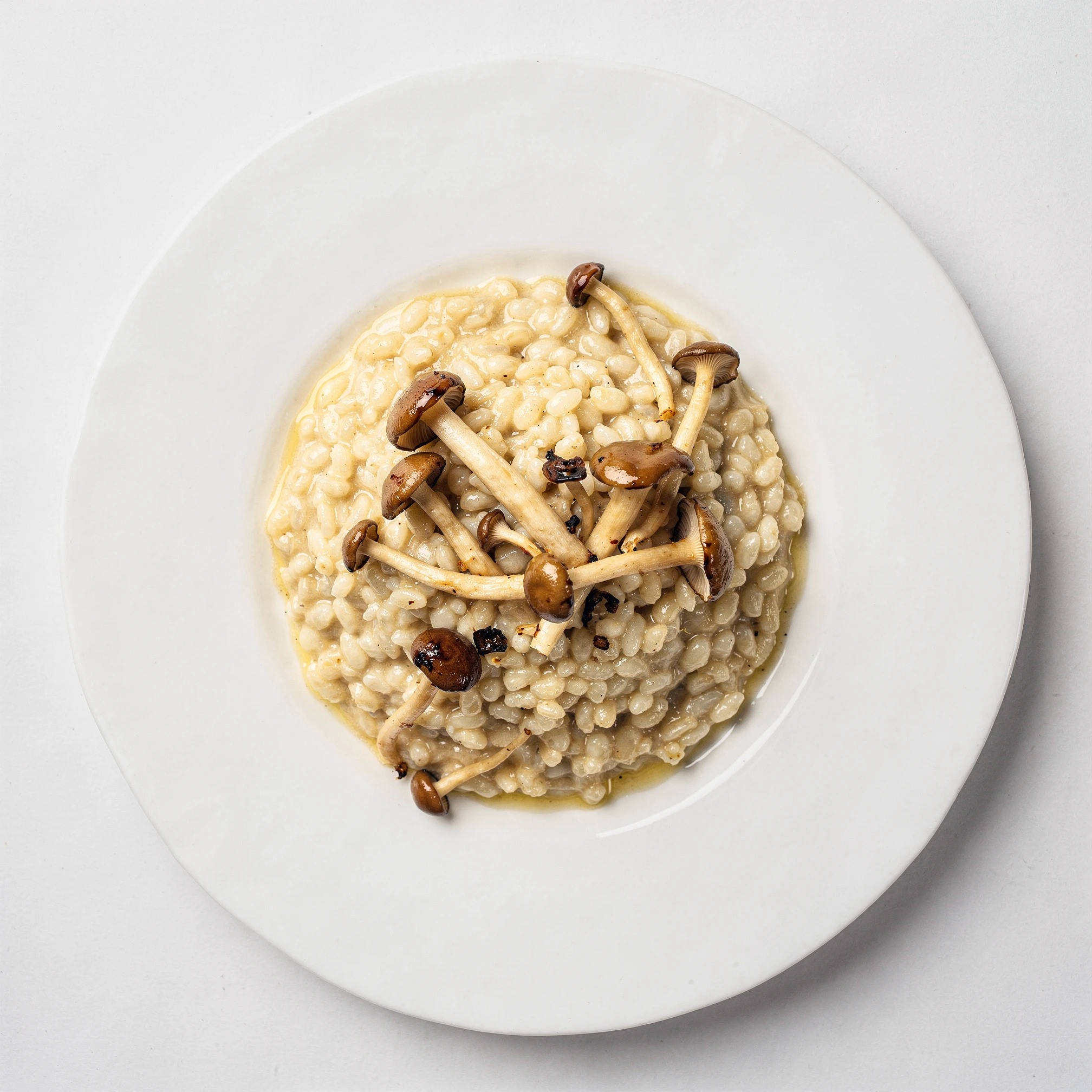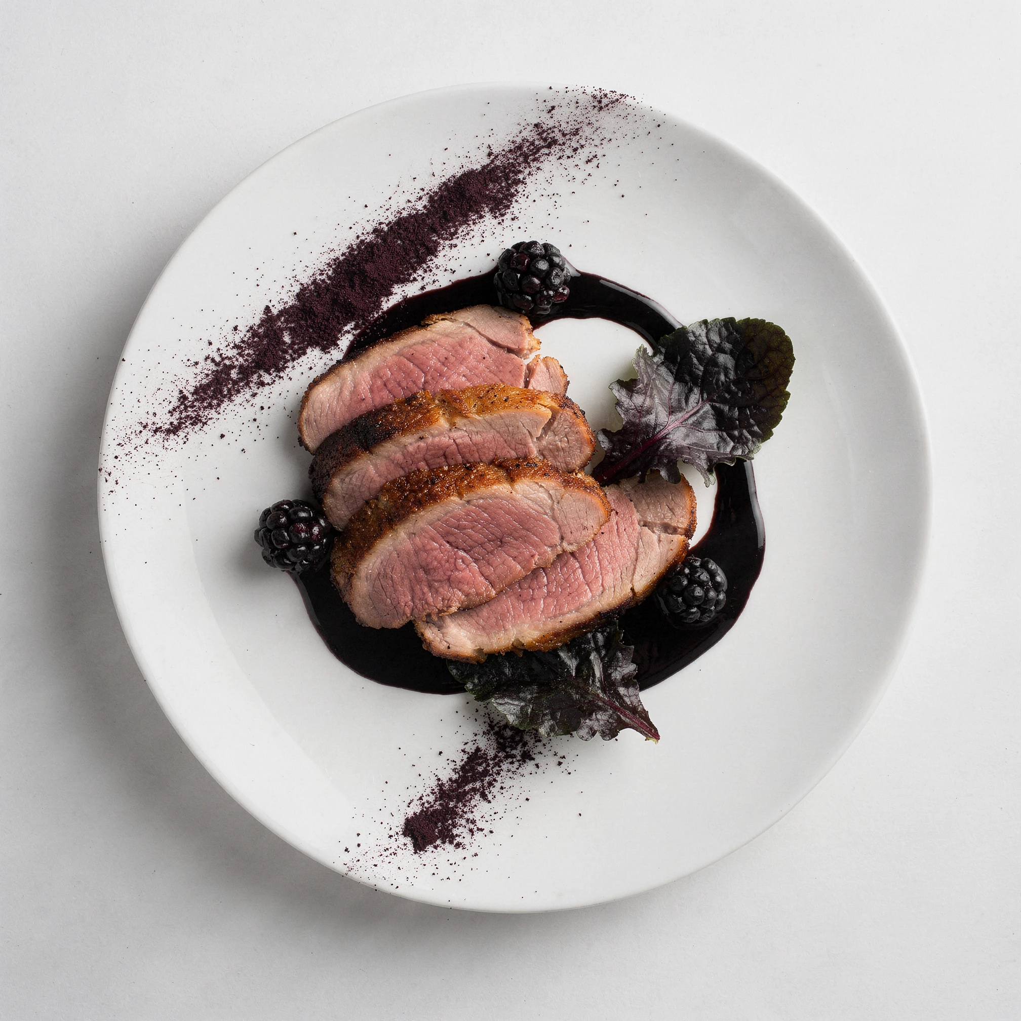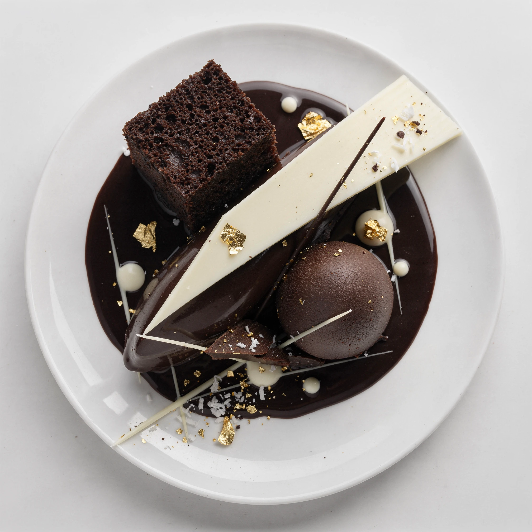 The project is built around a fixed photographic grammar: a bird's-eye view, the complete plate fully visible, isolated within a neutral studio void, with white porcelain acting as a canvas. Removed from kitchens, restaurants, and service, the plate exists solely for inspection. The overhead view removes hospitality and replaces it with scrutiny. Appetite gives way to interpretation. What might initially resemble food photography resolves instead into something closer to contemporary still life, abstraction, and ritual diagram. Drinks appear sparingly within the sequence — small, ceremonial, almost medicinal — reinforcing ingestion as ritual rather than pleasure. We are often told that we eat with our eyes. EAT ME DRINK ME treats food not as nourishment, but as illusion, performance, and psychological threshold: a tasting menu that cannot be eaten, only read.