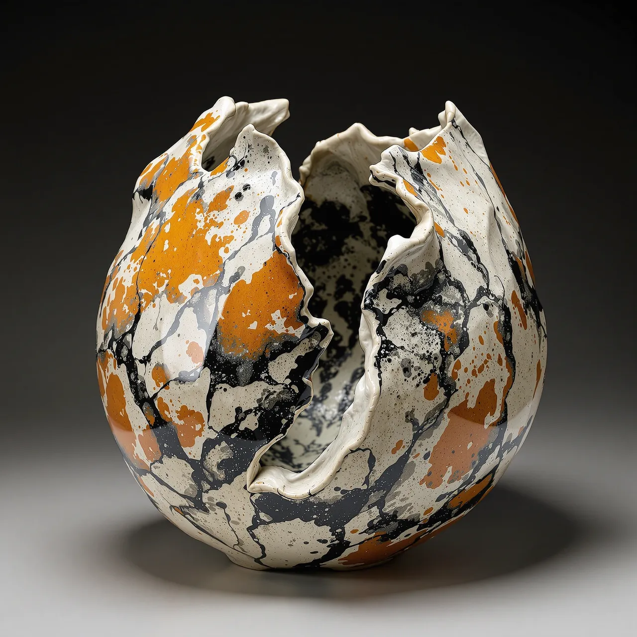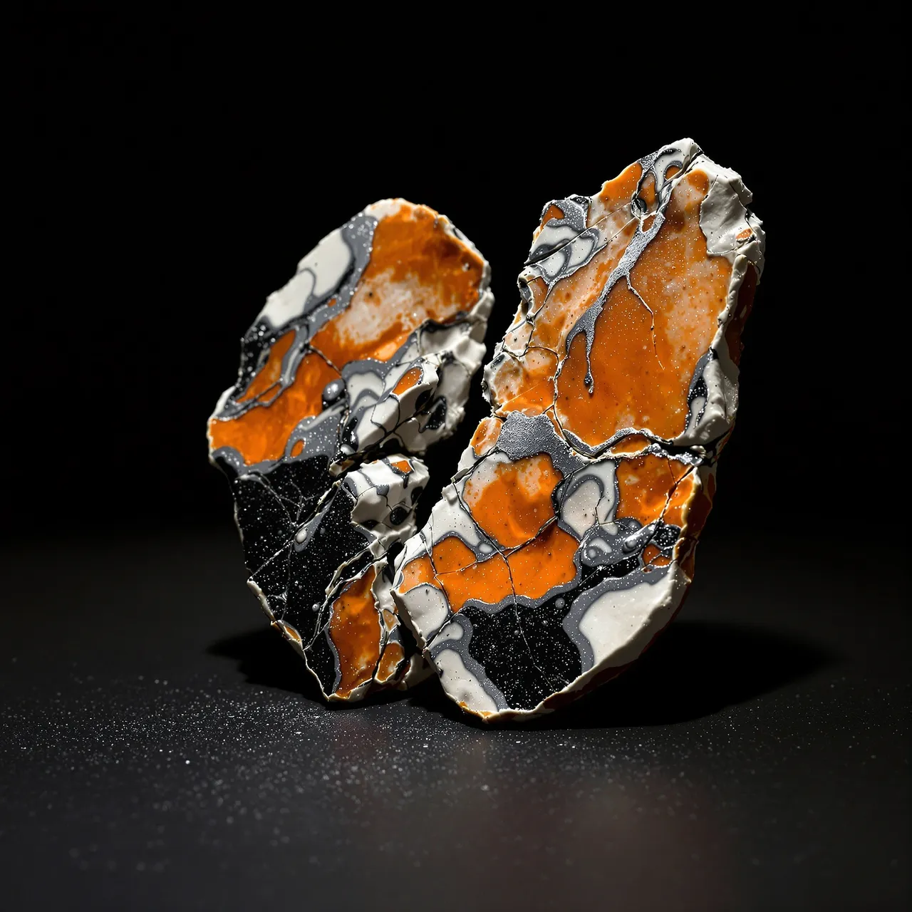 Forma takes its name from the Latin word for shape, mould, or appearance — rooted in both the physical act of making and the philosophical idea of form itself. It speaks to the essence of this series: a study of ceramics shaped not by hand, but by language and code, where the universal act of shaping clay is translated through the lens of artificial intelligence. At its core are two enduring ceramic traditions: Shino and Raku. Each glaze tells a story of fire and alchemy — fiery oranges, smoky greys, deep crackles, and luminous metallic flashes — anchored by familiar forms and pushed into sculptural abstraction. Beginning with functional vessels, the series charts a journey from utility to expression: objects that are useful, then altered until they transcend function altogether. Each image is a meditation on materiality and transformation, held in perfect stillness yet alive with the illusion of weight, texture, and substance.