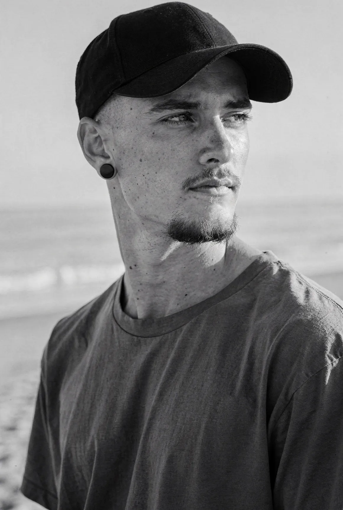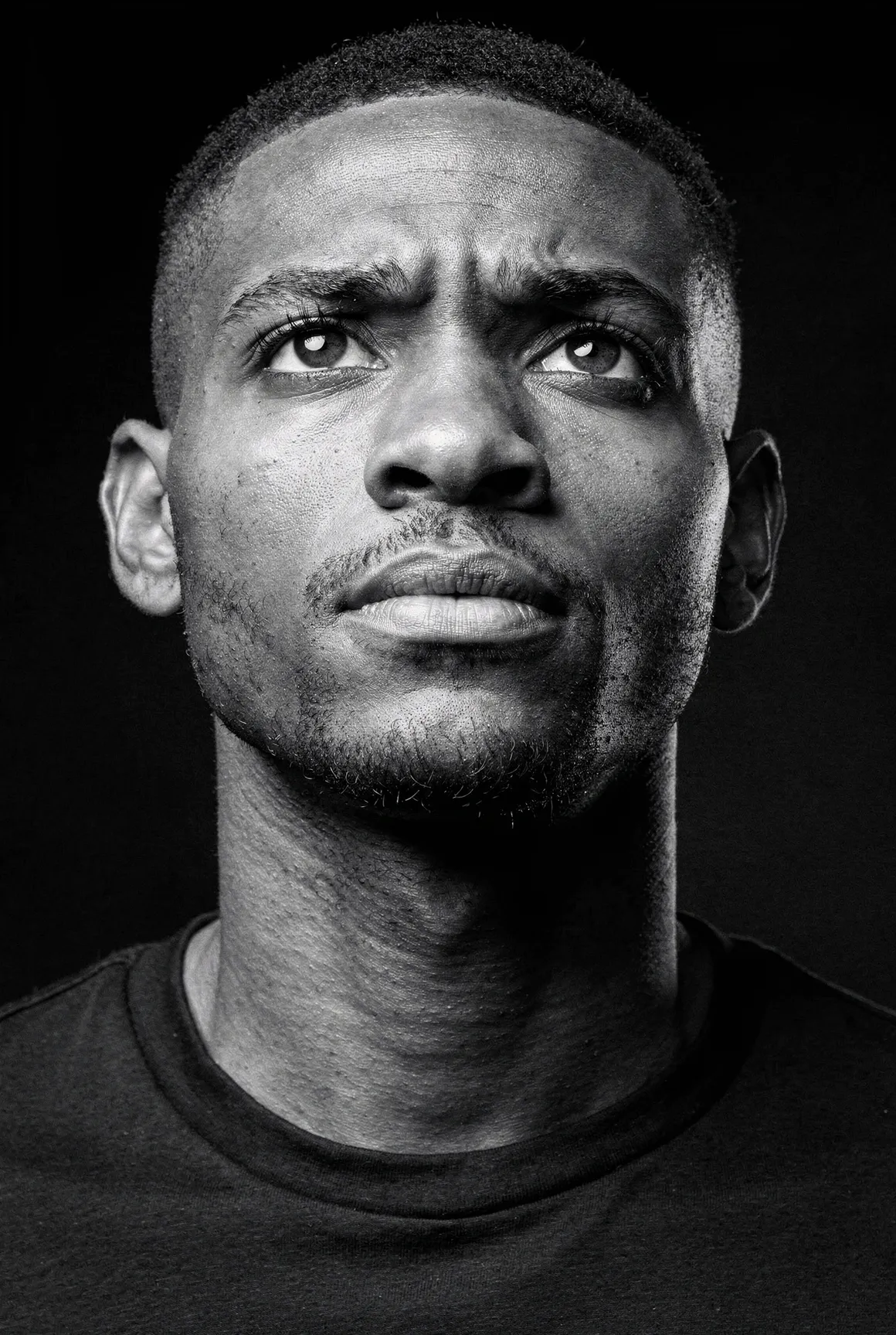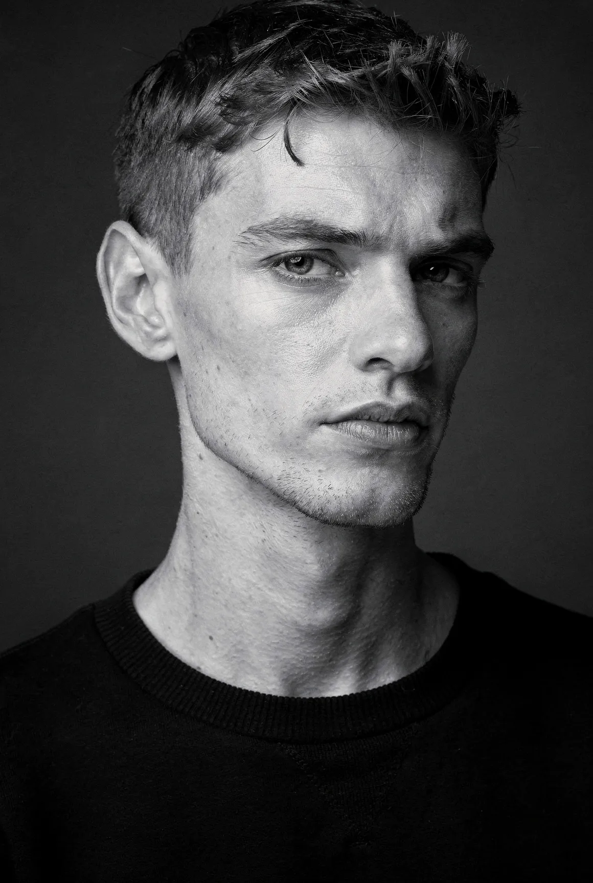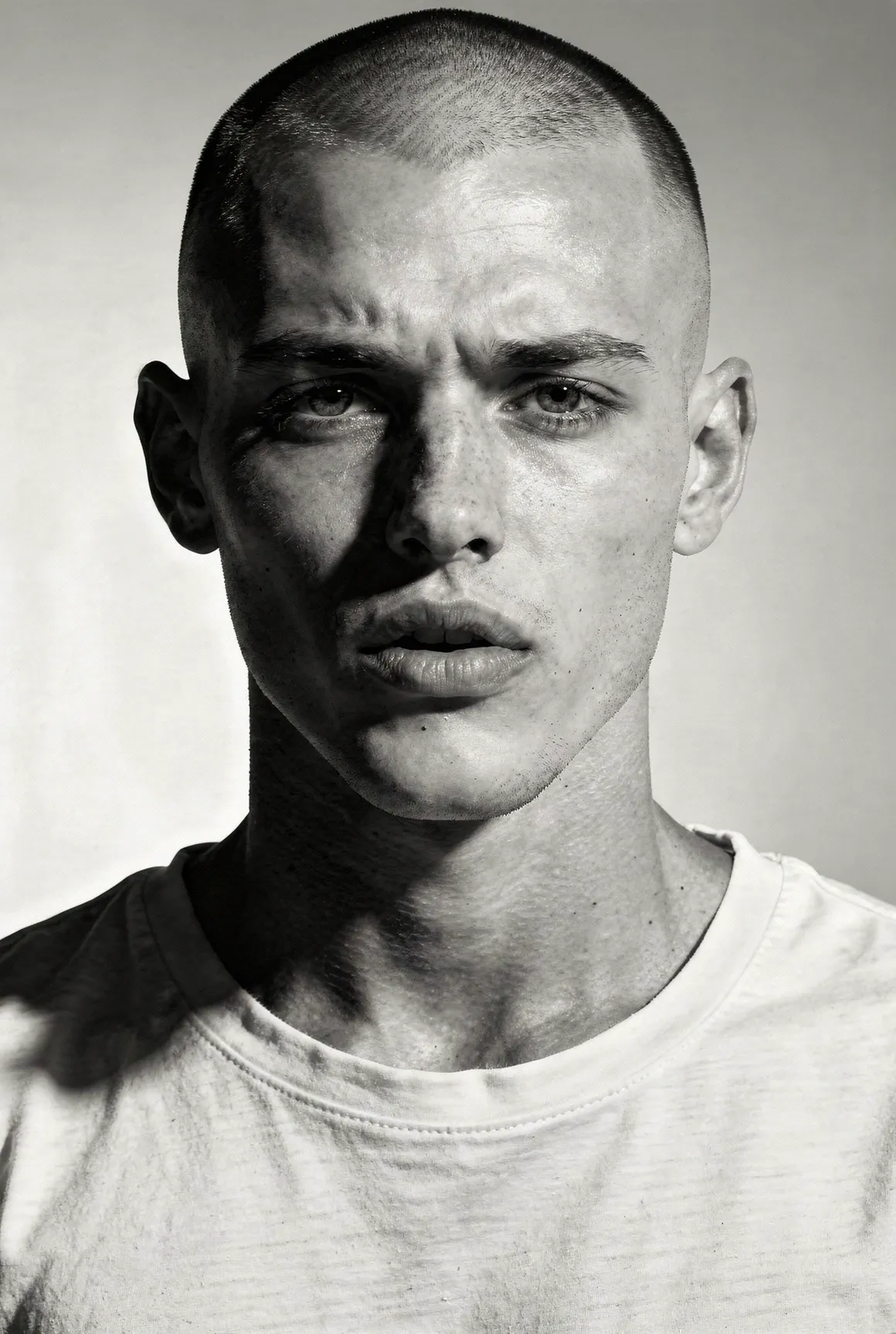 Each portrait presents a figure shaped by aesthetic codes we recognise — the sharpness of fashion editorials, the poise of professional models, the neutrality that invites projection. They are young men who could populate any major city — or the pages of any major magazine, but here they stand alone, removed from branding, styling excess, or trend. Clothing is minimal and purposeful: shirts, T-shirts, jackets, pieces chosen not as fashion statements but as structural elements that guide posture and tone. Light defines them more than costume does. Expression defines them more than narrative does. The focus is on the face, the presence, the almost-human gravity that emerges when a synthetic figure is rendered with enough precision to feel observed rather than invented. These are not AI faces stitched together from clichés. This is not "AI portraiture." This is portraiture — full stop.