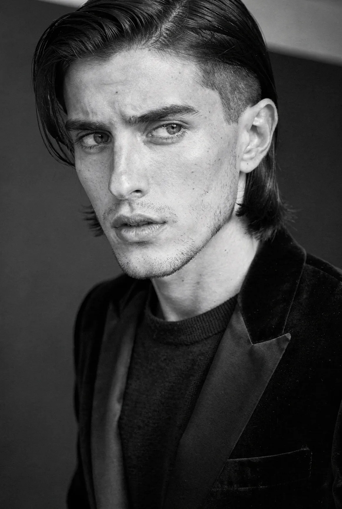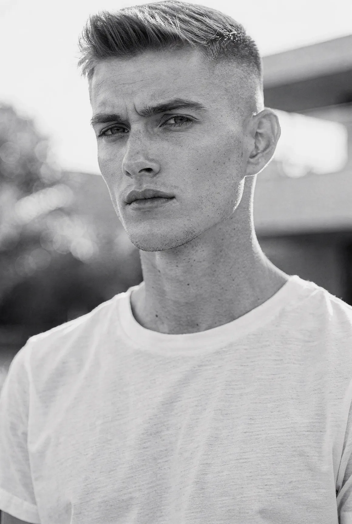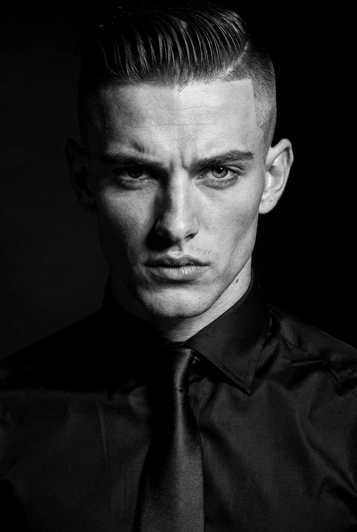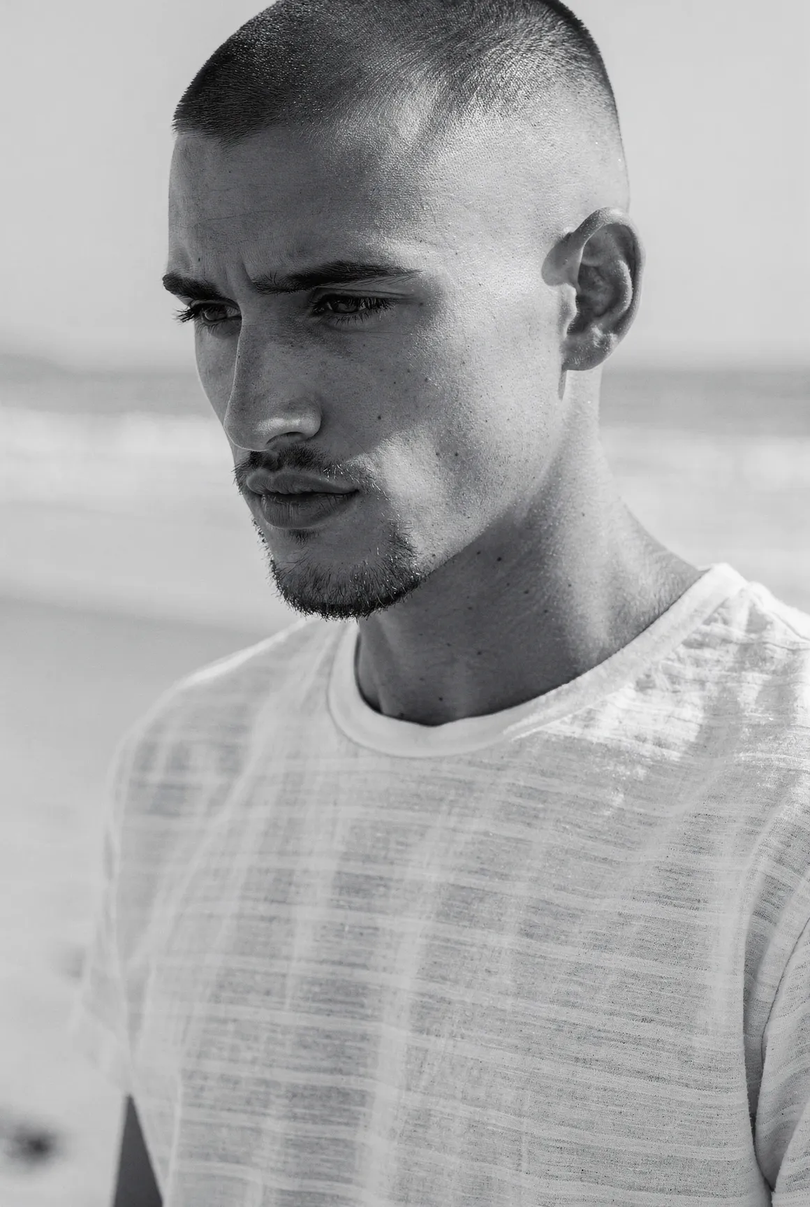 Each portrait presents a figure shaped by aesthetic codes we recognise — the sharpness of fashion editorials, the poise of professional models, the neutrality that invites projection. They are young men who could populate any major city — or the pages of any major magazine, but here they stand alone, removed from branding, styling excess, or trend. Clothing is minimal and purposeful: shirts, T-shirts, jackets, pieces chosen not as fashion statements but as structural elements that guide posture and tone. Light defines them more than costume does. Expression defines them more than narrative does. The focus is on the face, the presence, the almost-human gravity that emerges when a synthetic figure is rendered with enough precision to feel observed rather than invented. These are not AI faces stitched together from clichés. This is not "AI portraiture." This is portraiture — full stop.