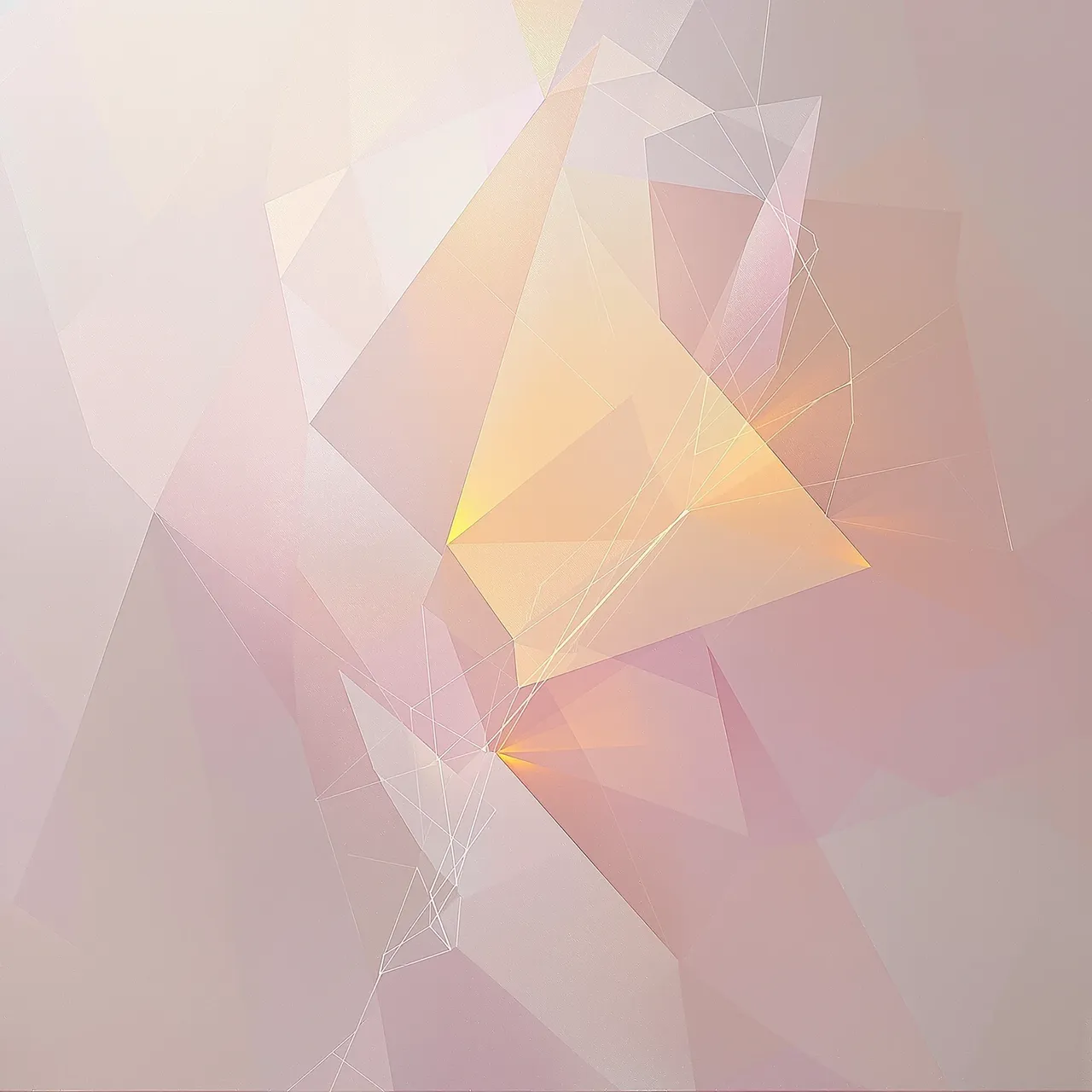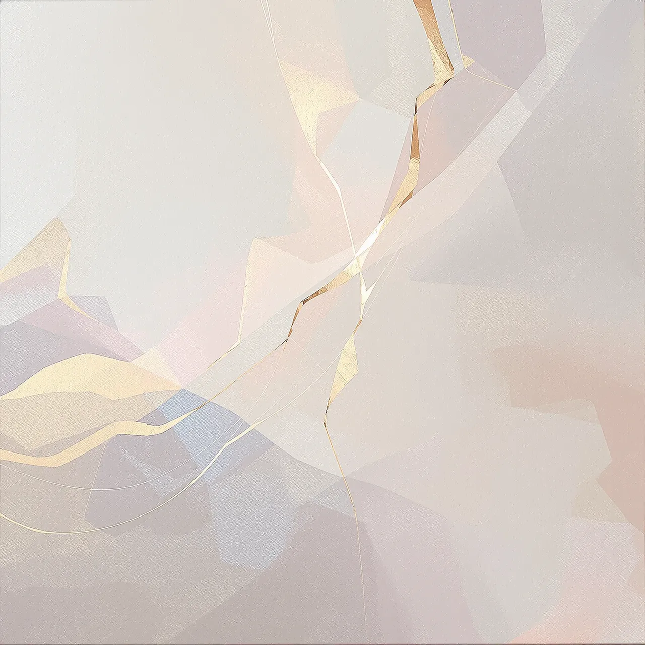 "Let there be light" — the command that brings order from chaos. Lumen rests in that same idea: the transformation of energy into something visible, absence turning to substance. Across eighteen images, the logic of light reveals itself — from gesture to structure, from substance to shimmer. These are synthographs — digital paintings where light itself has learned to draw. The compositions feel ethereal yet precise: crystalline networks of reflection and refraction. The palette drifts between white, pearl, pink, mauve, and soft lilac; metallics lend a quiet iridescence. Representation dissolves into resonance. Each image behaves like a presence — something both seen and felt, like sunshine on a summer's day.