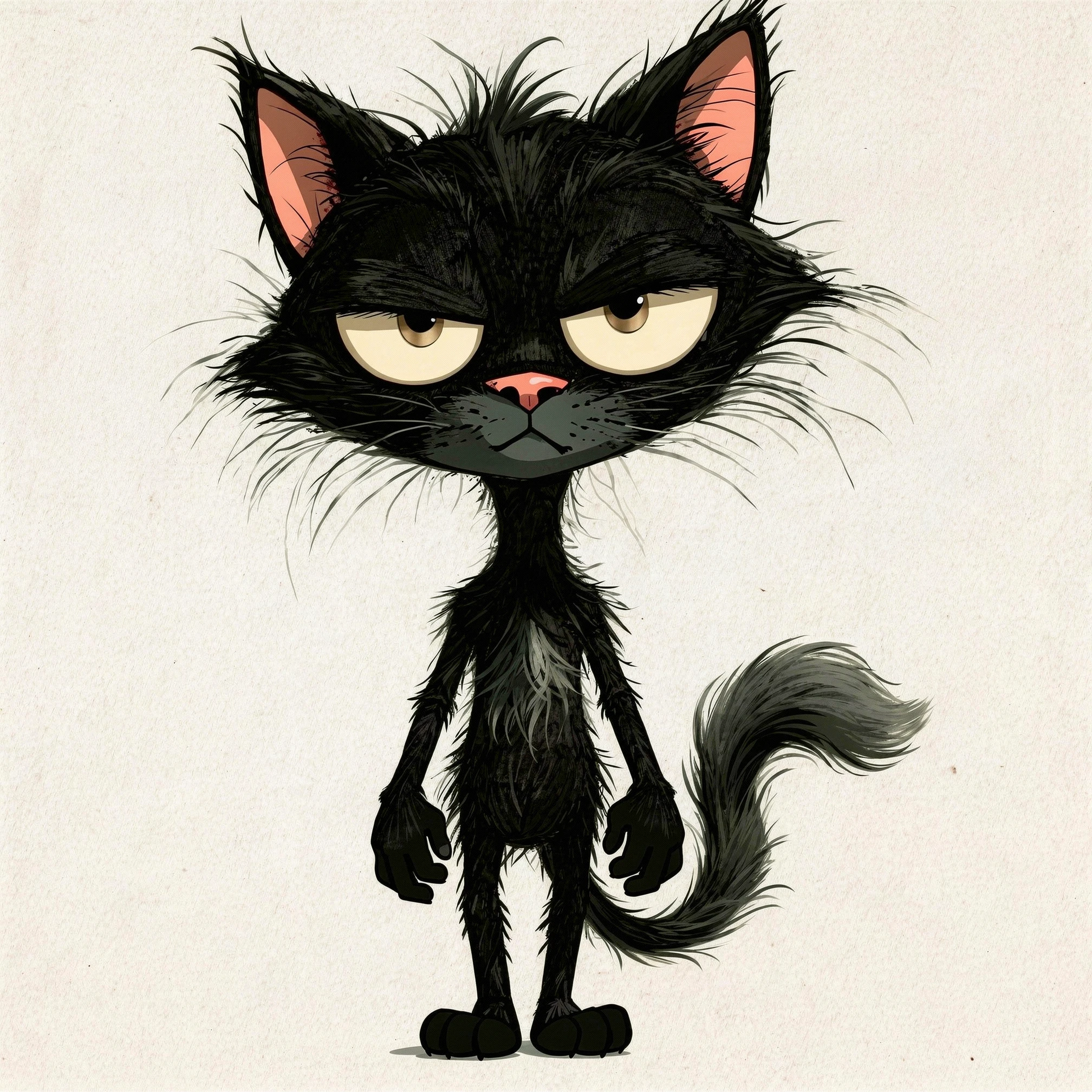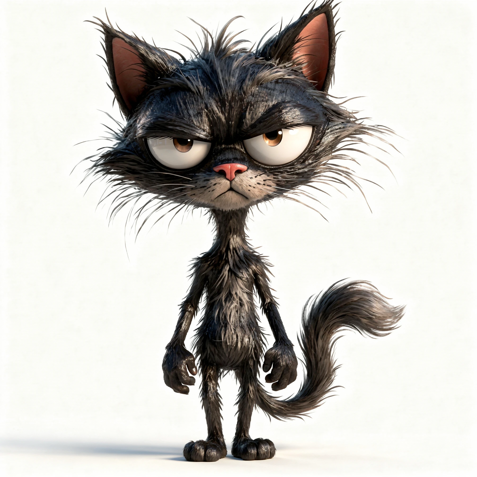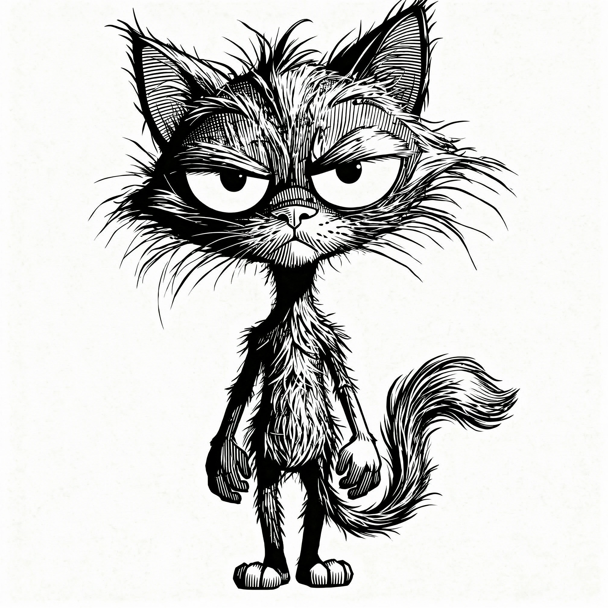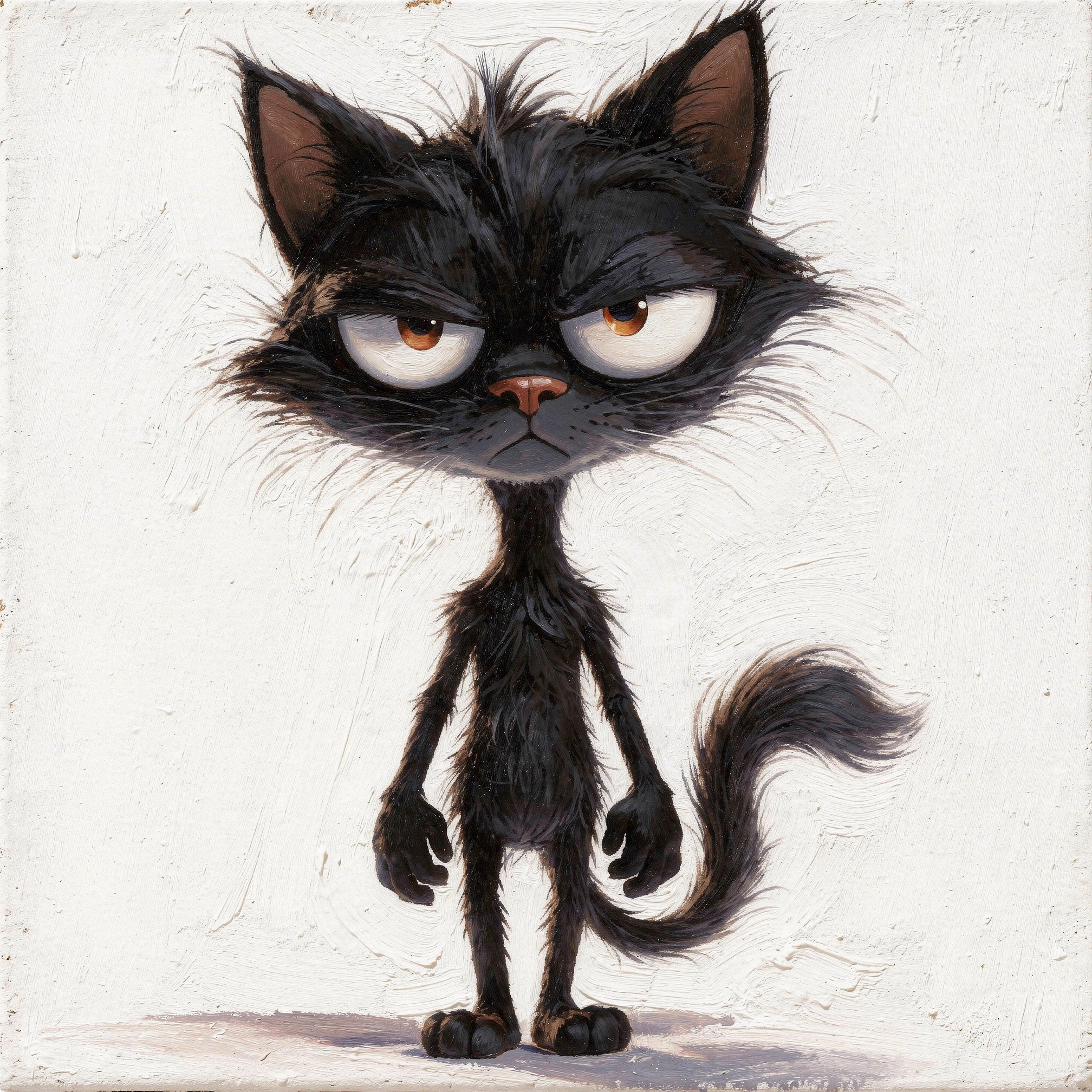 Osuneko is a Japanese term meaning male cat — osu denoting maleness, neko meaning cat — a simple, functional name for a character who resists embellishment. The project presents a single character held constant while everything around him shifts. Across eighteen images, the same cat appears to pass through a familiar arc of artistic development: from loose pencil gesture to tightened line, from ink to colour, from suggestion to volume, and finally into a fully realised three-dimensional presence. The cat's power lies in being slightly feral, a bit underloved, and absolutely unimpressed by the world's nonsense. His expression barely changes, yet his form is repeatedly translated — not to tell a story, but to test how identity survives repetition. Osuneko does nothing in particular. He simply exists, and in doing so invites projection: attitude, history, mischief, indifference.