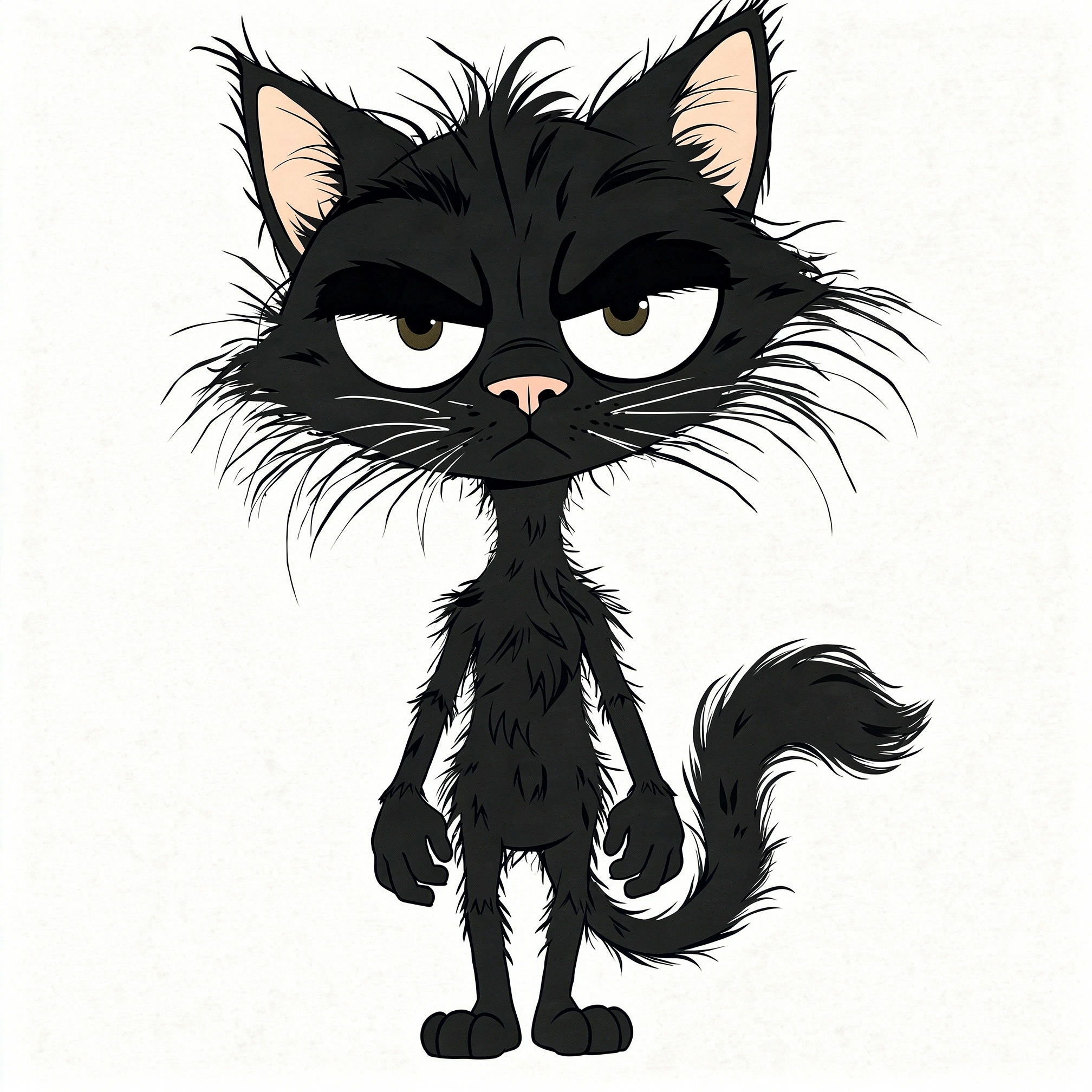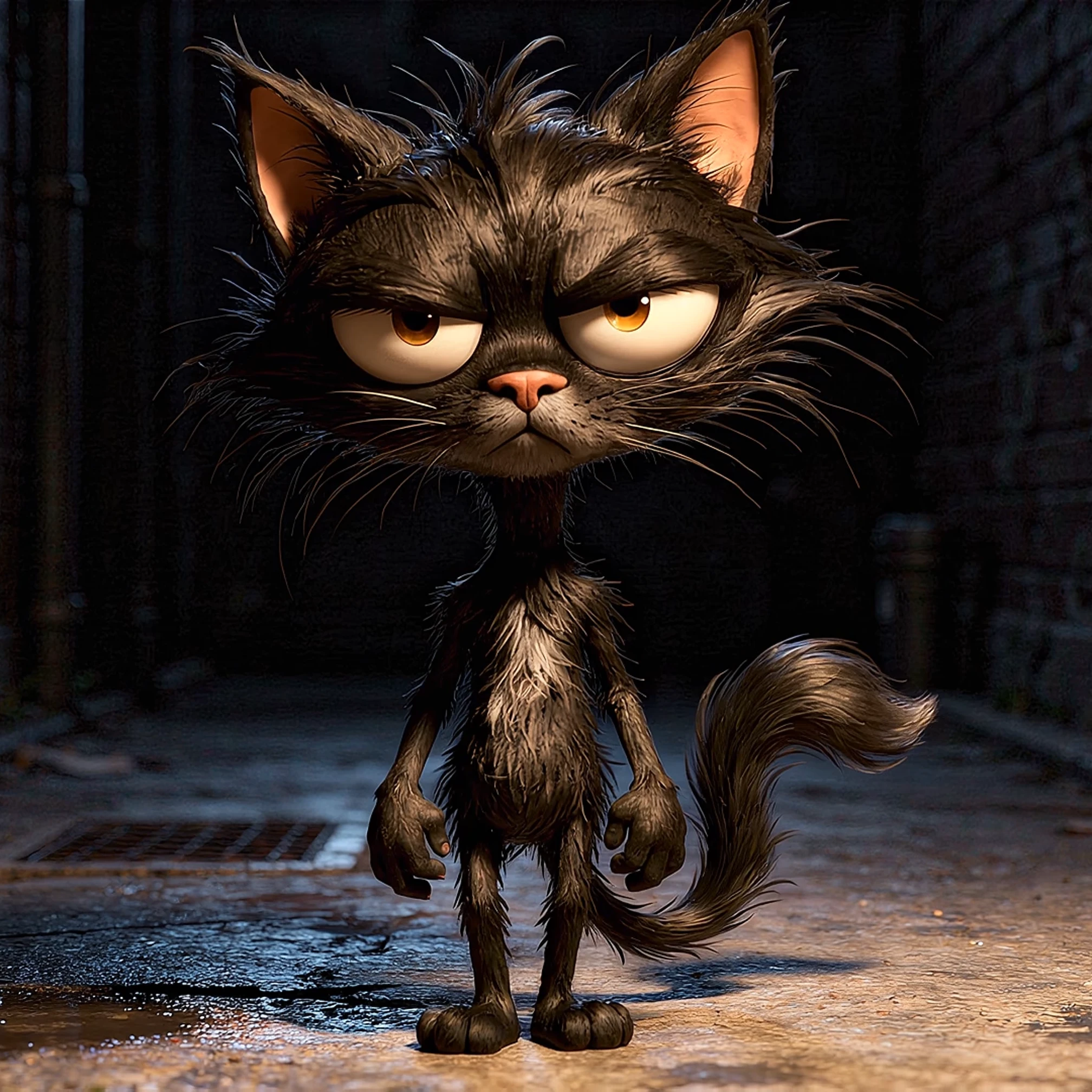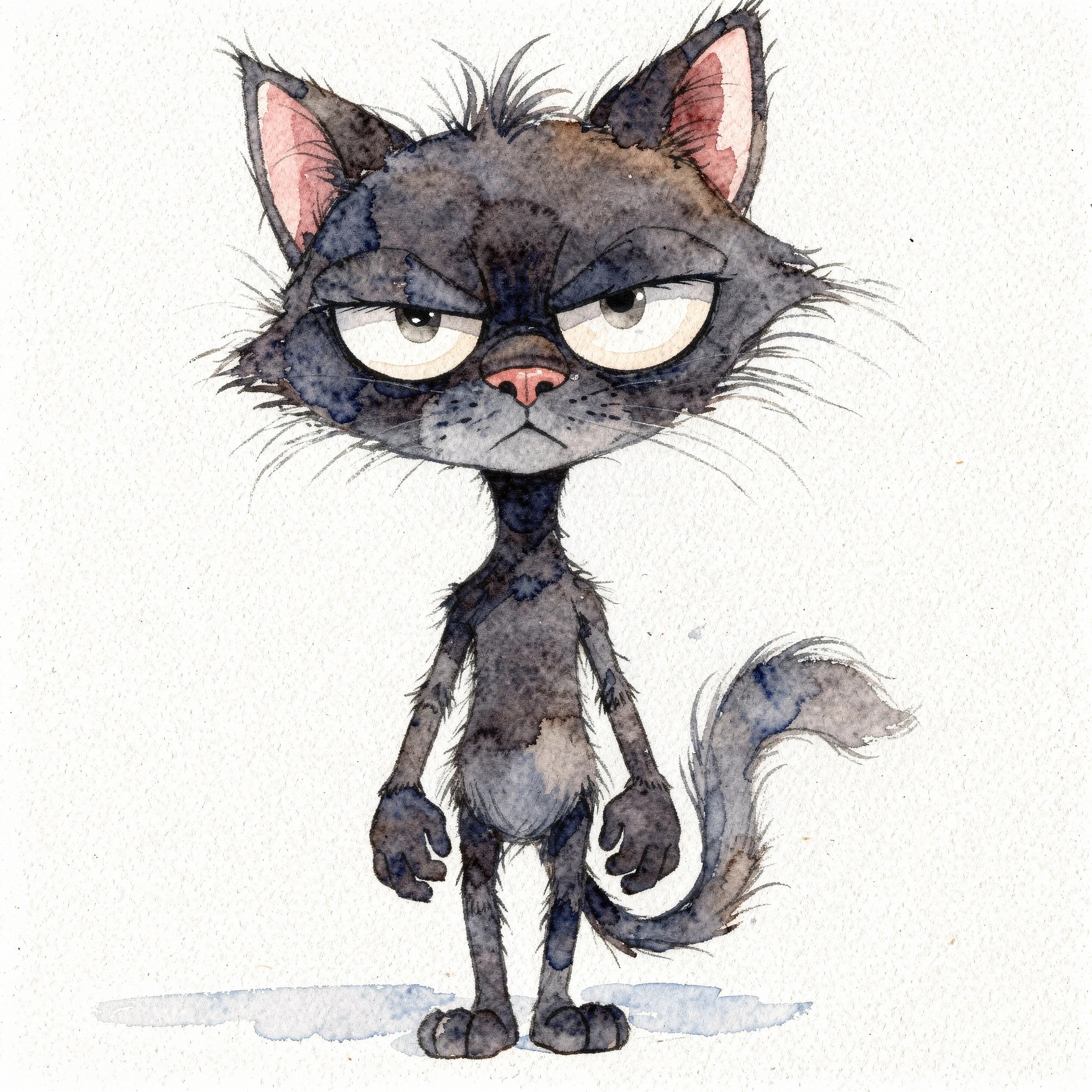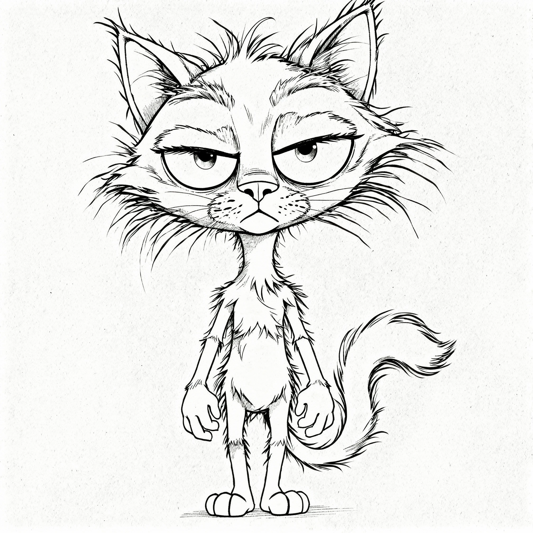 Osuneko is a Japanese term meaning male cat — osu denoting maleness, neko meaning cat — a simple, functional name for a character who resists embellishment. The project presents a single character held constant while everything around him shifts. Across eighteen images, the same cat appears to pass through a familiar arc of artistic development: from loose pencil gesture to tightened line, from ink to colour, from suggestion to volume, and finally into a fully realised three-dimensional presence. The cat's power lies in being slightly feral, a bit underloved, and absolutely unimpressed by the world's nonsense. His expression barely changes, yet his form is repeatedly translated — not to tell a story, but to test how identity survives repetition. Osuneko does nothing in particular. He simply exists, and in doing so invites projection: attitude, history, mischief, indifference.