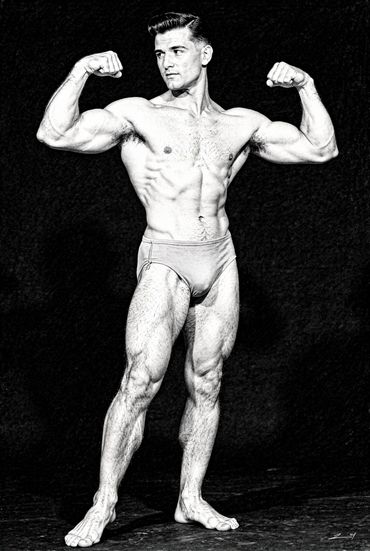 This project draws its lineage from the mid-twentieth-century world of physique magazines, publications that operated at the edge of legality and visibility. These magazines were devoted to physique photography — that is, photographs of muscular “beefcake“ men — typically young and attractive — in athletic poses. During their heyday in North America in the 1950s to 1960s, they were presented as magazines dedicated to fitness, health, and bodybuilding, and were widely consumed by a mostly-gay audience. Handsome, virile men appeared in minimal clothing — posing pouches, briefs, G-strings — in order to focus attention on the body. In a period shaped by censorship and repression, such photographs became an act of resistance, and the male body served as both signal and message.