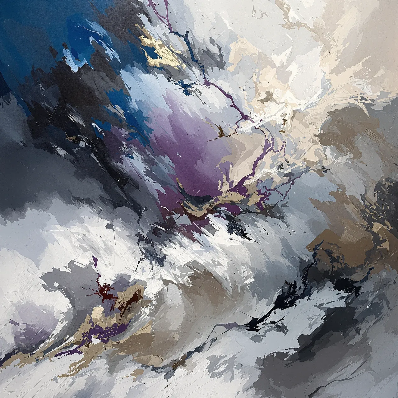 Created through collaboration with AI, these synthographs — images formed from language and intuition — replace pigment with pixels yet insist on the physical truth of paint: layered, greasy, and alive with texture. They suggest scale rather than declare it — images that could fill a wall or a mind, visceral and impossible to ignore. Each one is an environment more than an image: an experience of endurance. Storm is not about weather at all, but about the persistence of feeling, the quiet that follows thunder, and the air that never fully clears — the calm that exists only because chaos came first. The result is neither landscape nor abstraction, but something in-between: a psychic topography where weather and mood are indistinguishable.